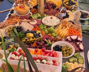 Perfect for larger gatherings, our stunning grazing tables create a beautiful centerpiece filled with abundant flavors, inviting guests to gather, connect, and enjoy a memorable shared experience.